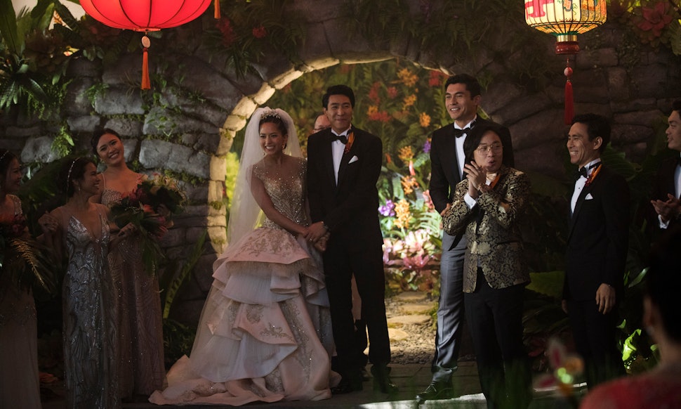 The wedding scene is one of the most beautiful in any movie I have seen. The sheer glamour in the arrangement of sets and costumes paired with stunning music, cinematography, and a climax in the characters' stories make it a whirlwind of cinematic perfection. And remember, the viewer is not invested in the story of the bride and groom, yet somehow their romantic celebration feels powerful through such excellent execution. Many times throughout the film, clever shots and music set this film above other romances. Asian versions of Madonna's "Material Girl" and Coldplay's "Yellow" and a memorable depiction of text-gossip in the opening elevate this to something special. When Rachel and Nick first arrive in Singapore, we are treated to a romantic montage; a staple of the genre. Yet the backdrop is a rural Singaporean marketplace and local food, and it is an early insight into this culture. Crazy Rich Asians is trying to break cliché while sticking to a standard script.